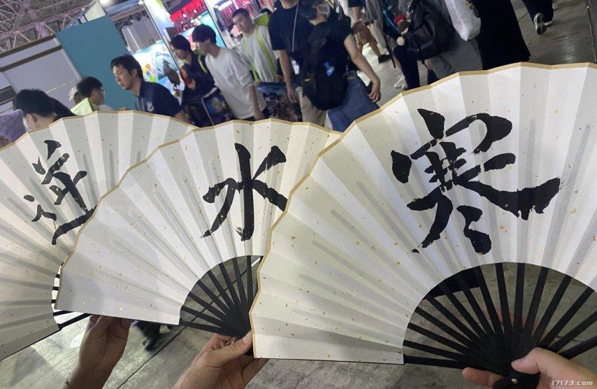現場設置的摺扇題字等國風互動活動,吸引了大量日本玩家踊躍參與。