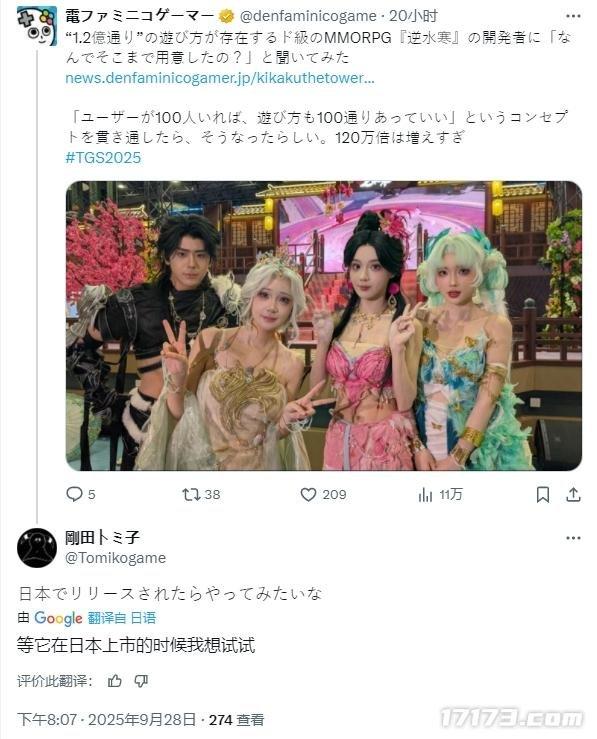 在TGS(東京電玩展)前,還有玩家好奇,在MMO相對式微的日本,《逆水寒》真的能打開市場嗎?