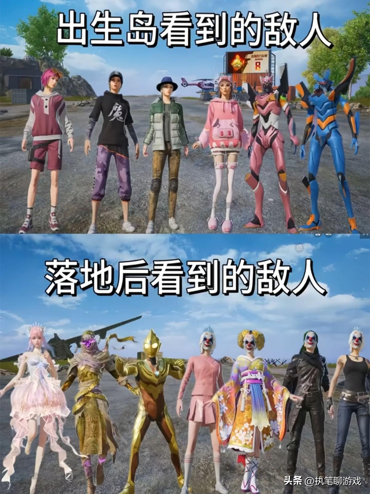 爲什麼出生島看到的敵人和落地後的敵人不一樣呢?其實這也算是和平的一大特色設定,60秒出生島一個紅裝都看不到,開局進入後半場經常能遇到。
