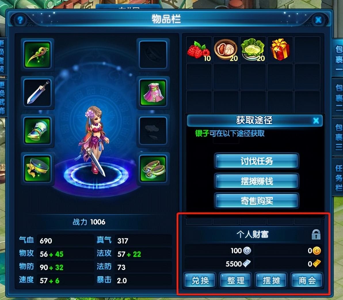 銀子、銀票支撐日常消耗與玩家交易,金子、金票服務於拍賣與商會購物,每種貨幣都有明確的獲取路徑。銀子可靠討伐任務、擺攤賺取,金子既能充值獲得,也能通過懸賞任務、寄售銀子換取。