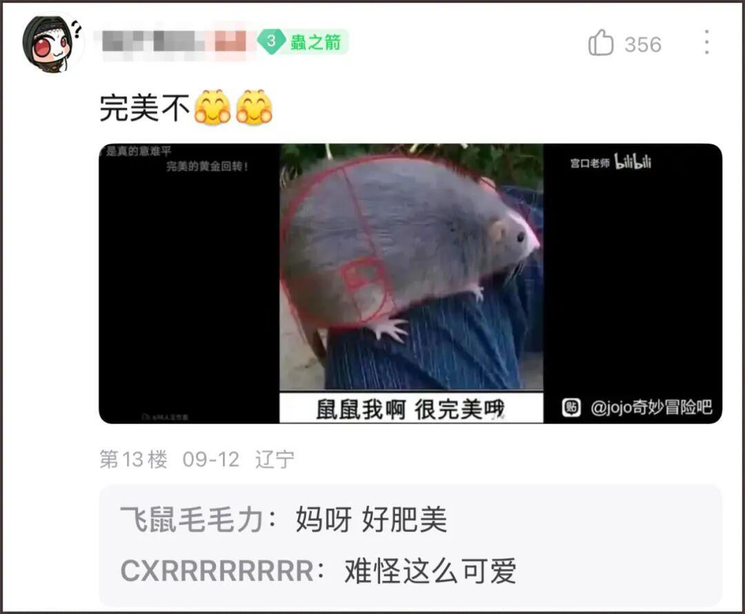 接着評論區就徹底歪樓,各種“黃金比例屁股”的梗圖、萌寵圖全冒了出來——你就說鼠鼠的形狀肥美不肥美吧。