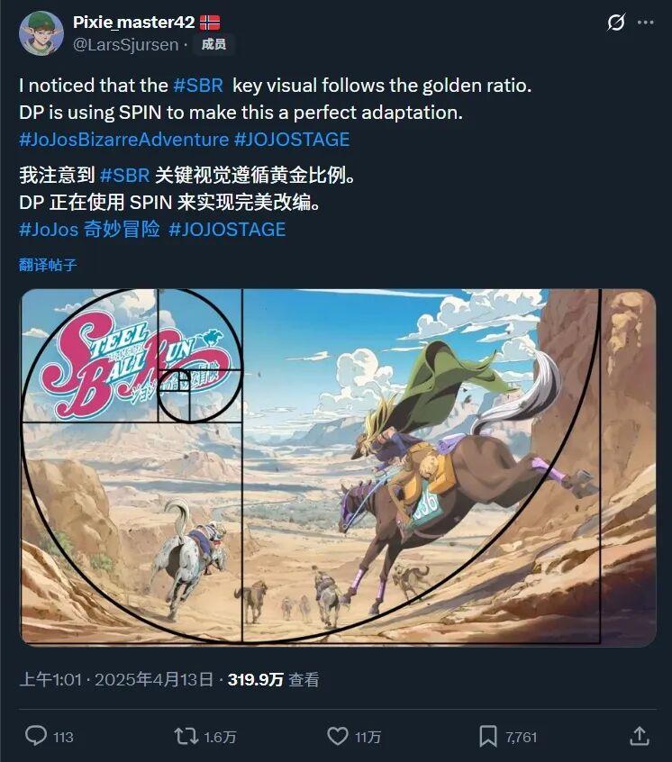 幾個月前動畫官宣的時候,就有網友發現視覺海報的構圖遵循了黃金比例,這事在X上還引發了一波熱議。