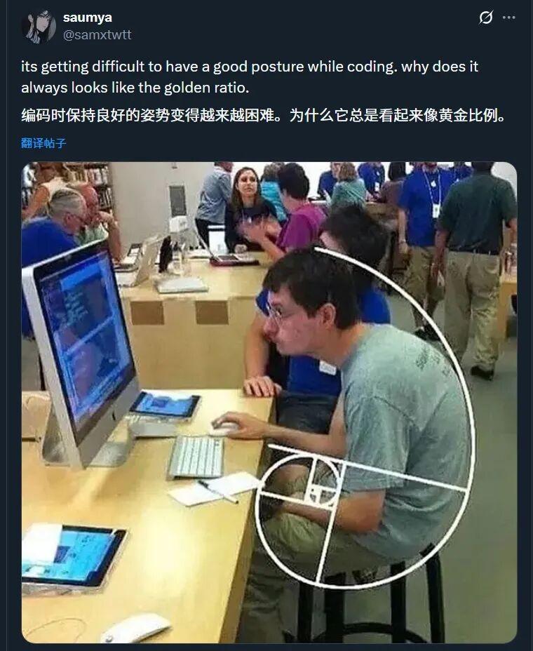 不光是玩梗,現實裏很多企業LOGO,比如蘋果、舊推特的藍鳥標誌,設計師是真的刻意用黃金比例的圓弧做分割。