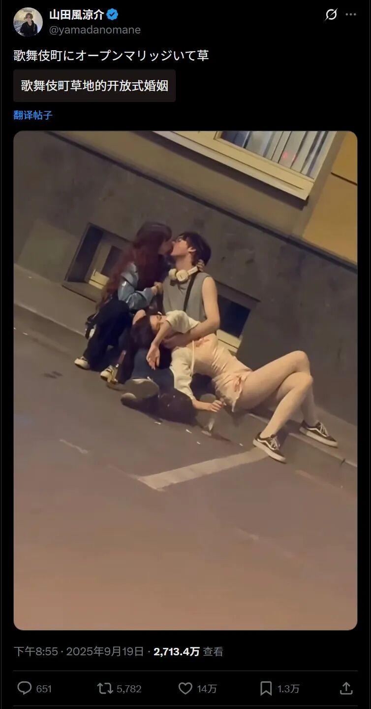 是這樣的,前陣子外網有一張街頭抓拍特別火,不知道你們刷到過沒有?說是有人在日本新宿的歌舞伎町街頭,拍到了非常戲劇化的一幕:
