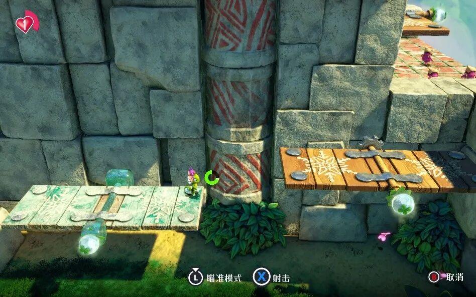 當然這只是基本功。我覺得這遊戲精髓的部分,在於尤卡和萊莉這對搭檔的能力互補設計,就像相聲裏的逗哏和捧哏,缺一不可,讓我有點聯想到《超級馬力歐:奧德賽》裏,馬力歐和那頂無所不能的帽子。