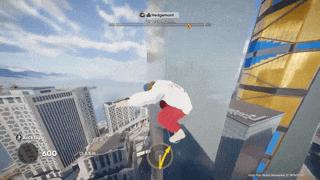 幾乎所有百米高的城市建築頂上,都特意放了些“不怎麼自然”的滑板 U 池。明眼人一看就懂,這是在鼓勵你在樓宇間穿梭,直接在半空中炫特技。