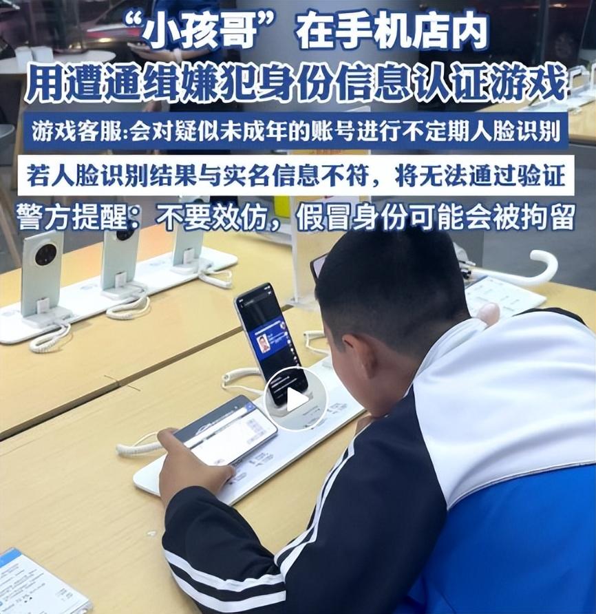 近日,一名未成年男孩在手機店內,正試圖用通緝令上的犯罪嫌疑人身份證號及姓名信息進行遊戲實名認證。
