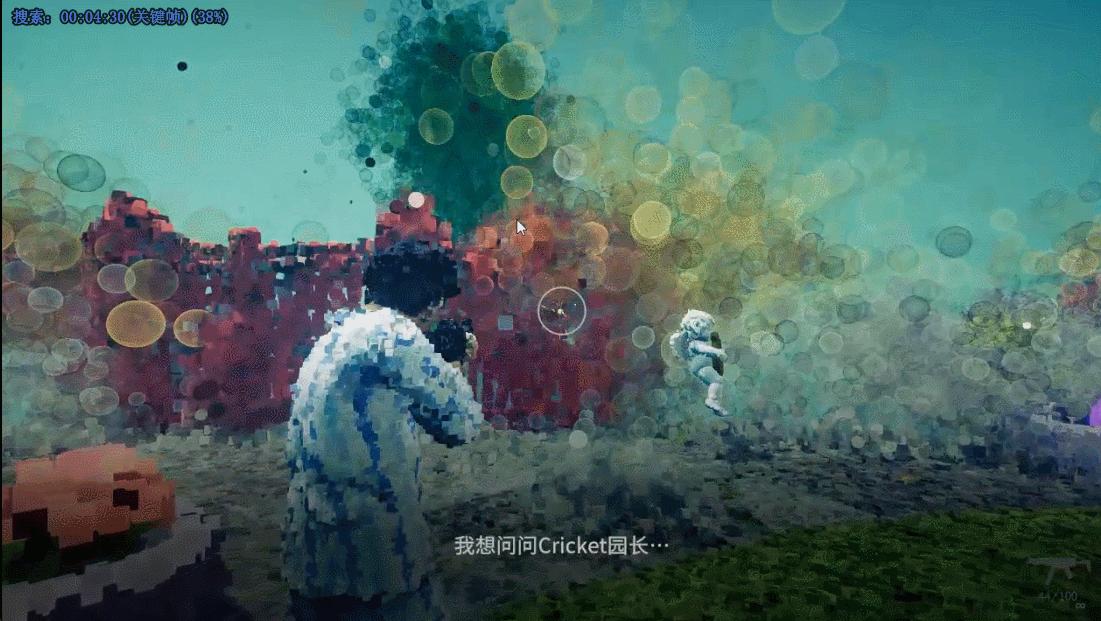 遊戲主要玩法就是“通過射擊重組一切”,玩家需要通過沖鋒槍、火箭筒等武器將場景中漂浮的抽象粒子不斷重組,從中構築出具象的建築、物品乃至NPC角色。這些重組後的實體不僅將成爲玩家交互的對象,同時也將是我們獲取線索、通往新場景的關鍵的所在。