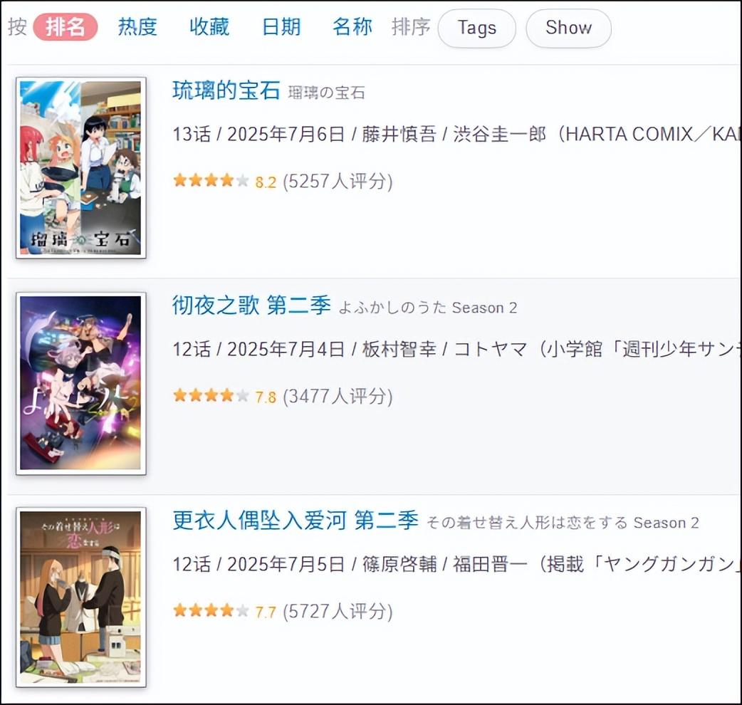 平平無奇、又硬核挑人的原作擺在那,動畫開播也就沒多留意。但沒想到國慶再看,《琉璃的寶石》已經成爲Bangumi 7月評分最高的動畫,力壓好評如潮的《更衣人偶》與我非常喜歡的《徹夜之歌》。