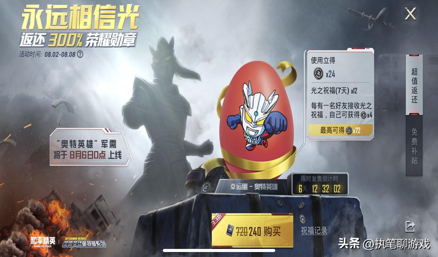時至今日,天哥都記得當初看到“返還300%”的說法時,那種心情至今都讓人記憶猶新,當時的和平營地等玩家遊戲社區裏,幾乎都是在討論即將到來的奧特曼,人氣完全不遜色如今的紅裝,甚至可以說是有過之而無不及!