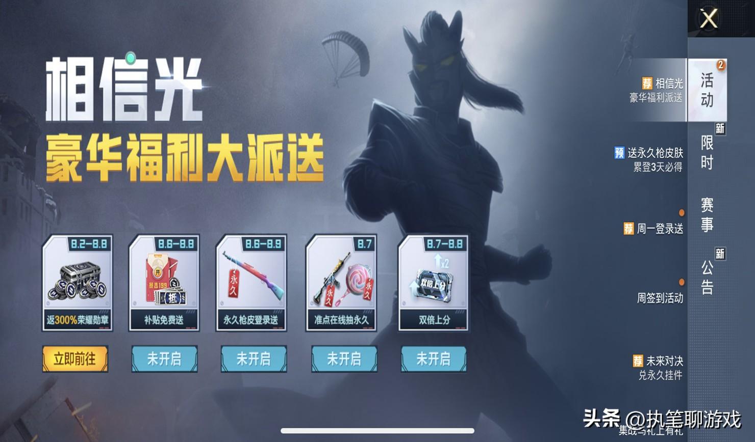 時間回到21年的8.2,當時遊戲裏忽然彈出了一個“相信光,豪華福利大派送”的專題,我們能看到精修海報裏的一系列福利獎勵以及右側的“黑影”!