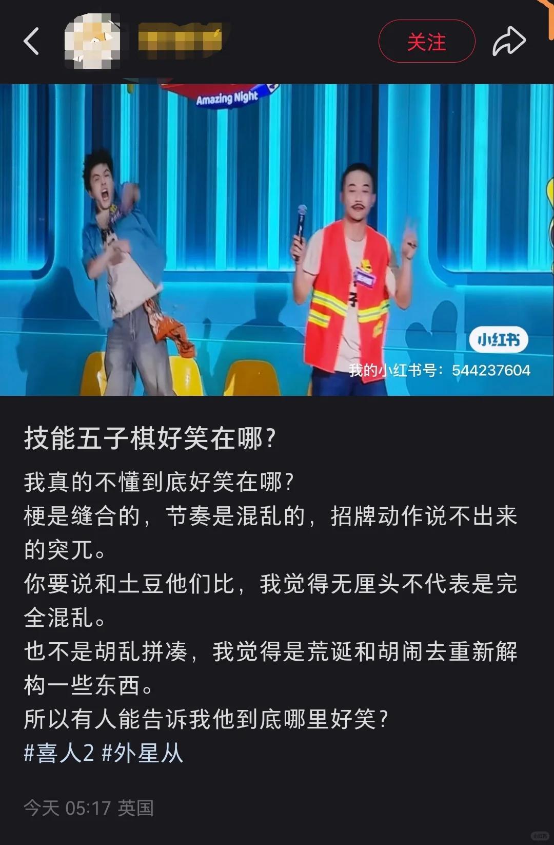 節目中,演員們需要根據賽制,組成不同的小隊創作編排喜劇節目參加競演。這首爆火的《技能五子棋》,正是截取自其中一組小隊——“外星從”,所主演的同名喜劇作品。