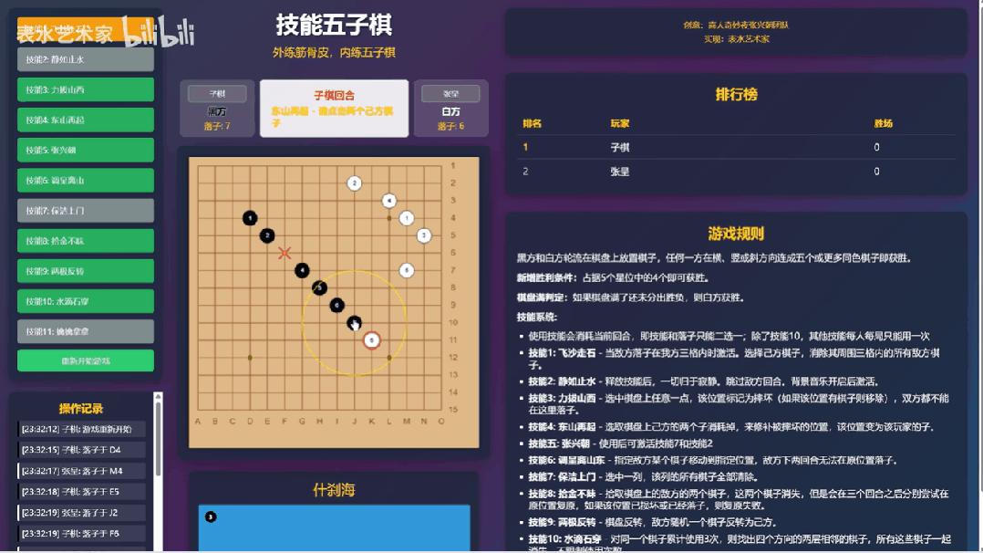 還有博主爲了還原節目,爆肝3天往傳統五子棋里加入技能,做成了小遊戲。飛沙走石、力拔山兮、兩極反轉這些經典技能都被成功復刻出來。