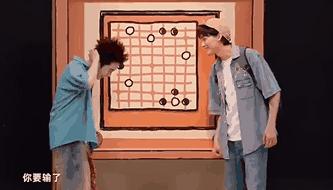 最後,他一邊問徒弟張呈:“你有多久沒有在下五子棋的時候又唱又跳了”,一邊跟技能五和子棋倆人在五子棋盤上熱舞。