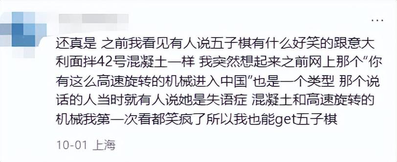 然而,看《技能五子棋》的時候,不少人覺得自己並不是在看喜劇,是在看短視頻在放“意大利麪拌42號混凝土”和“你有這麼高速旋轉的機械進入中國”。