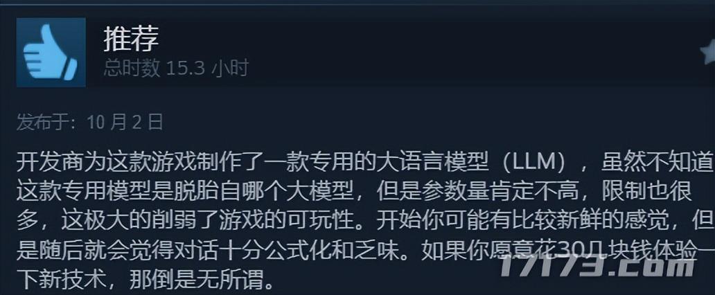 單從Steam平臺高達85%的好評率來看,不少人對蔡浩宇畫出來的這個AI實時交互,前往元宇宙探索的“大餅”是相當看好的。