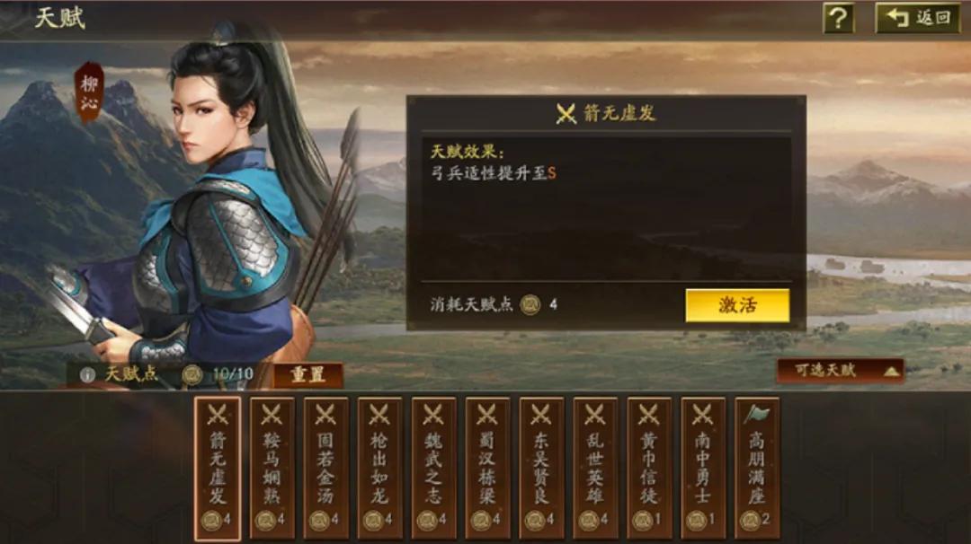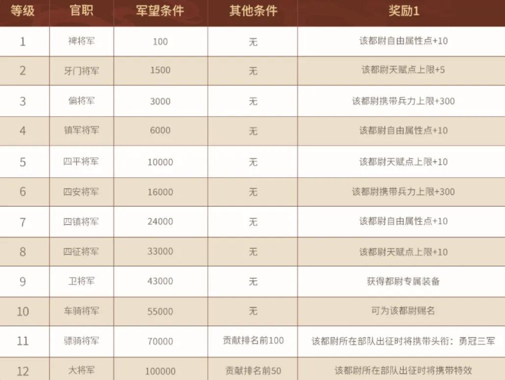 歷練階段則爲都尉提供了屬性成長方向的二次選擇,玩家可爲都尉選擇武力、智力等特定成長方向,每次歷練隨機生成主屬性提升。都尉系統還特別設計了天賦系統來強化兵種適性、陣營歸屬,進一步增強都尉戰法效果。