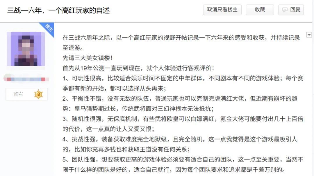 在《三國志·戰略版》論壇中,我們可以看到不少老玩家對遊戲的可玩性、平衡性、團隊社交等方面給出的好評,這也讓《三國志·戰略版》在近年來扛住了不斷湧現的三國題材SLG新品的衝擊。