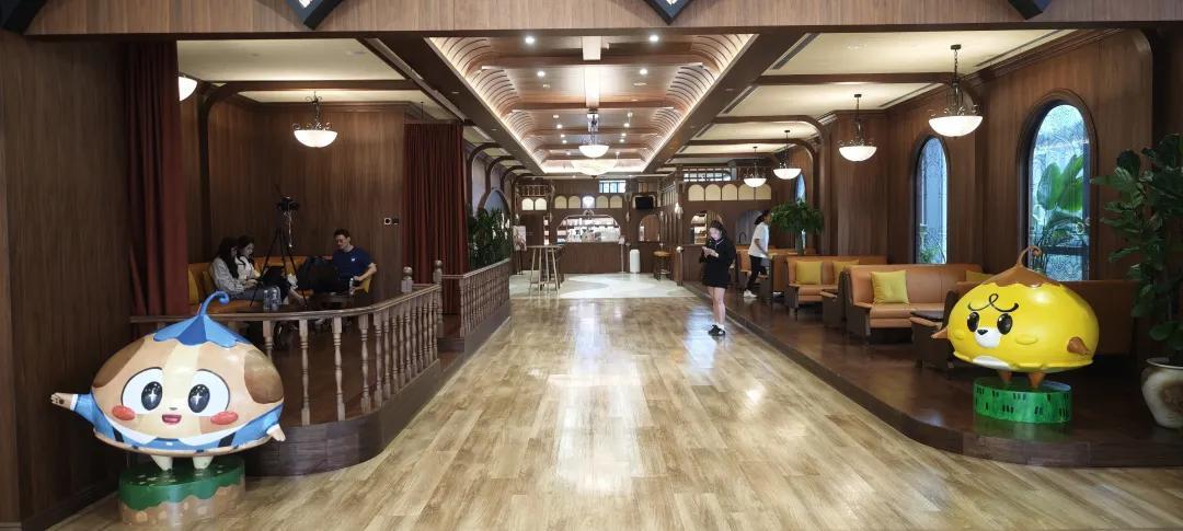 今天庫克參觀的是莉莉絲在上海科技綠洲的辦公樓,其咖啡公共空間的設計與《劍與遠征》系列中的月桂小酒館極其相似,相當於莉莉絲在自家公司還原了自家遊戲的標誌性場景。這裏每隔1週週五會舉辦「日咖夜酒」活動,莉莉絲成員可以在放鬆的氛圍中和同事、朋友閒聊。