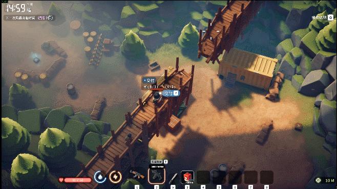 比如在遊戲前期裝備不足的情況下,你很難與夜晚的機械蜘蛛碰一碰,因此在探索時總要考慮剩下的時間是否足夠支撐角色在天黑前跑到撤離點安全撤離。而在某一局中,我偶然發現在修復一個斷橋後,便可直達資源相對豐富的區域搜索,省去了繞遠路的時間,大大提升了摸圖的效率。