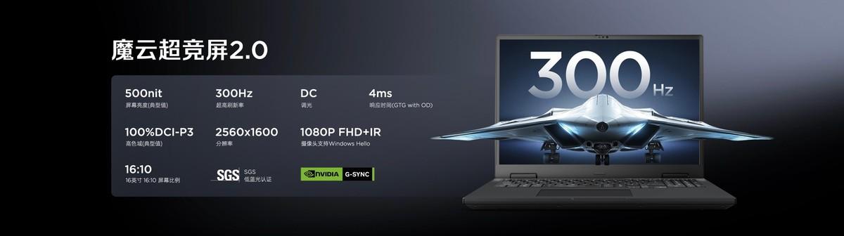 屏幕配備16英寸300Hz刷新率魔雲超競屏2.0,在刷新率、色域、響應速度與護眼上全面升級,適配不同遊戲與使用場景。配備16英寸屏幕,分辨率達2560x1600,300Hz超高刷新率搭配4ms GTG響應時間,無論是FPS類對流暢度要求極高的遊戲,還是快速滑動網頁、文檔,畫面都無拖影、無卡頓,流暢度拉滿。
