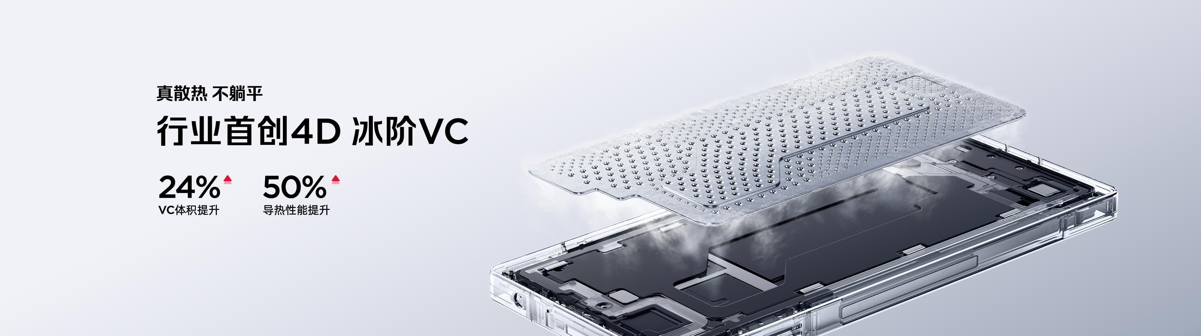 紅魔11 Pro系列搭載行業首創4D冰階VC,其體積相較前代提升24%,整體導熱性能提升 50%;同時搭配電競本級別的液態金屬3.0與馭風4.0,再疊加創新的水冷技術,共同構建起“水冷+風冷+VC +液態金屬”的四重散熱閉環,全方位覆蓋熱量產生、傳導、散發的各個環節,爲手機高性能持續輸出提供穩定保障。