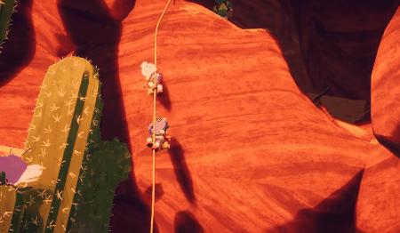 作爲新遊醬,這款遊戲給我留下深刻印象的是它“所有人必須在一起”的核心機制。遊戲中的角色有時會以一根看不見的“繩子”連接起來,這使得玩家的每一個行動都緊密地牽制着隊友。