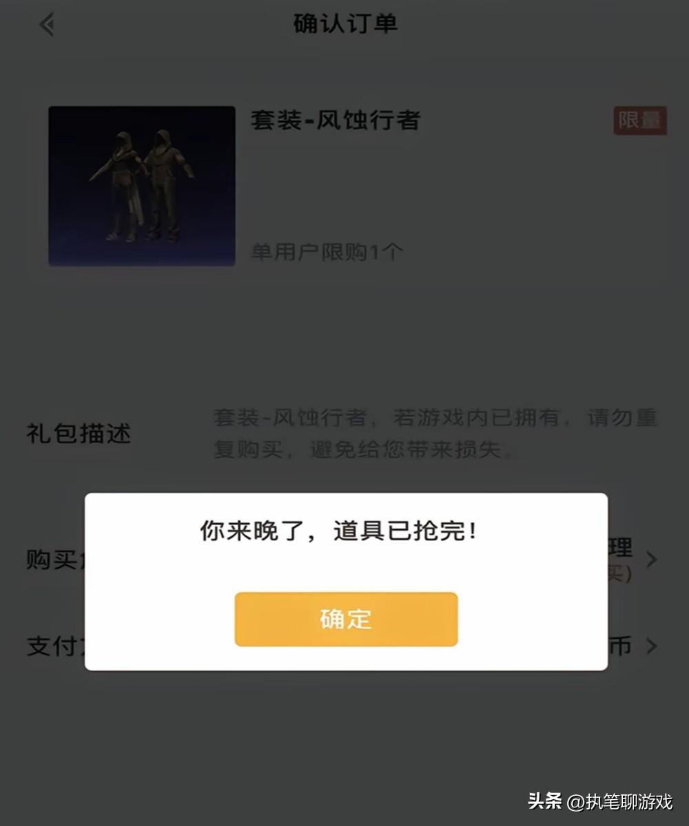 時間過得飛快,在長達數小時的時間裏,3套衣服經歷了一輪又一輪的補充,其中的旱漠遊騎、砂語先知幾乎都可以在“後半場”裏隨意拿到,唯獨有着“皮簾兒”綽號的風蝕行者,依然是每次都短短時間出現已搶光的提醒。