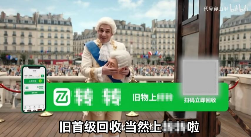 小手再一劃,下一個視頻是法國知名“無頭騎士”路易十六在推廣二手平臺APP:舊首級回收,當然上XX啦!
