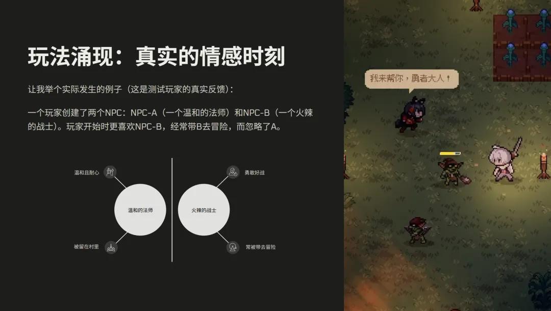 傳統遊戲建立情感連接的方式,通常依靠精心編寫的劇情和大量市場曝光的角色形象,來製造情緒高潮。這種方式確實有效,但也存在限制:所有玩家的體驗往往是相似的,劇情難免公式化、套路化。就像看電影,大家會在同一時刻流淚,也能大致猜到後續發展。