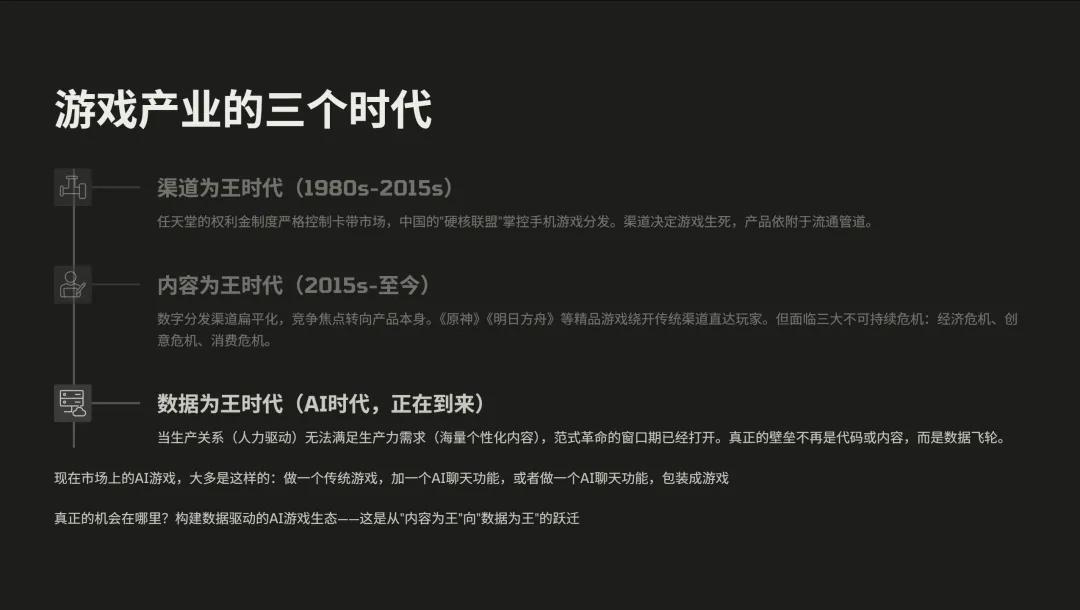 真正的區別在哪裏?我認爲是構建數據驅動的AI遊戲生態,這個是從“內容爲王”到“數據爲王”的一個躍遷。