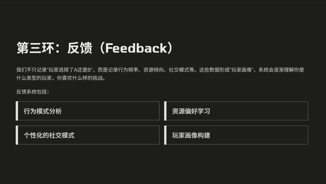 我們記錄的並不只是“玩家選擇了 A 還是 B”,而是更深層的數據,例如行爲頻率、資源偏好、社交模式等。這些數據會形成玩家畫像,讓系統逐漸理解你是什麼類型的玩家、你偏好什麼樣的挑戰。