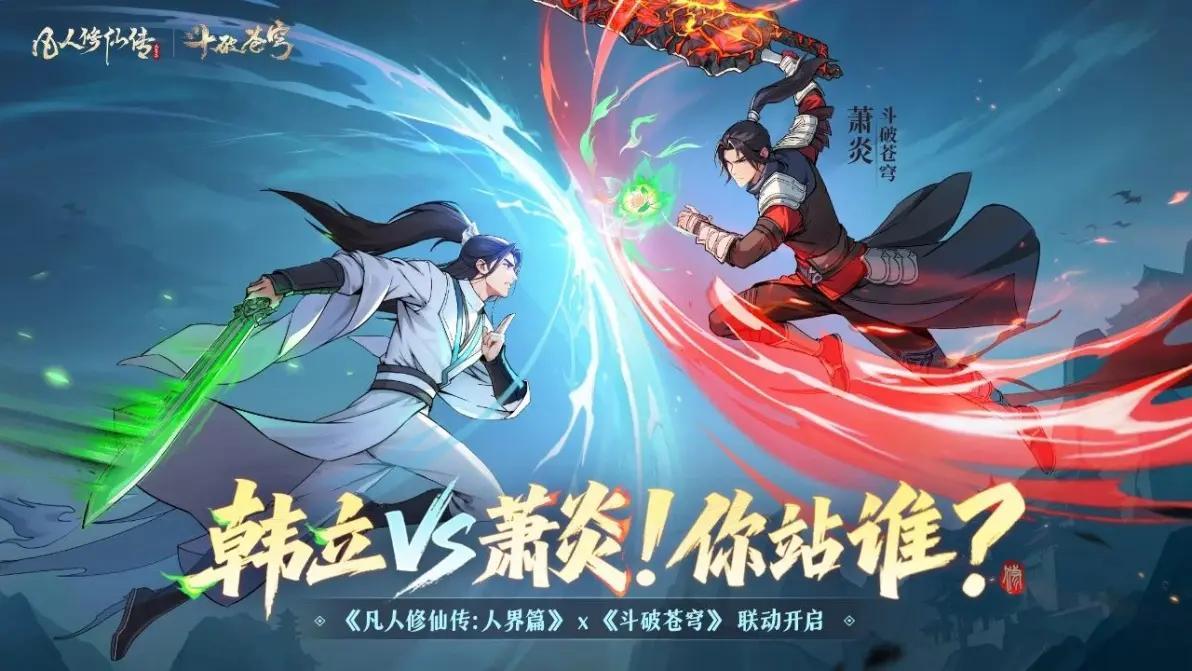 但三七互娛的野心不止滿足於單IP熱度,在今年5月,《凡人修仙傳:人界篇》還曾與另一部同樣是人氣小說改編的國漫《鬥破蒼穹》開展過聯動。同樣是遵循經典“打怪升級修煉”套路的作品,兩大IP的粉絲羣體有着相當大的重合,這次聯動除了讓《鬥破蒼穹》的角色穿越到《凡人修仙傳》的世界,還特別設計了雙男主對決的玩法,可以說圓了不少玩家的夢,狠狠地圈了一波粉,就是利用了兩大IP龐大的核心粉絲基礎。