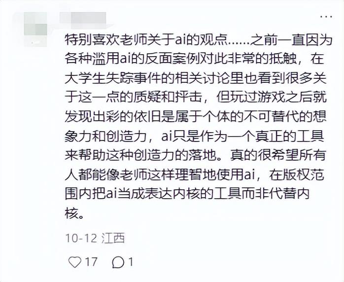 不少人認爲,這會成爲一個合理使用AI輔助創作的正面例子。
