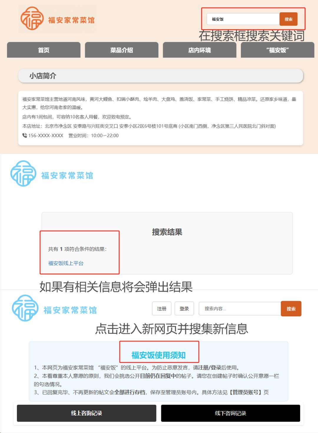 比如上圖中,“福安飯”這個信息很可疑,但界面進不去,所以我們就得通過搜索的方式尋找它是否包含關鍵信息。如果彈出新的網頁鏈接,那我們就可以進入新網頁蒐集信息,繼續尋找關鍵詞並進行搜索,循環往復。