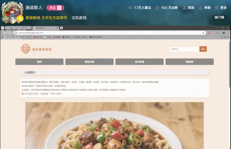 顧晴猜測這家店和顧銘的失蹤有關,於是決定從福安家常菜館的網頁入手暗中調查,通過自己對計算機網絡的瞭解破譯其中隱藏的信息,尋找弟弟的下落。
