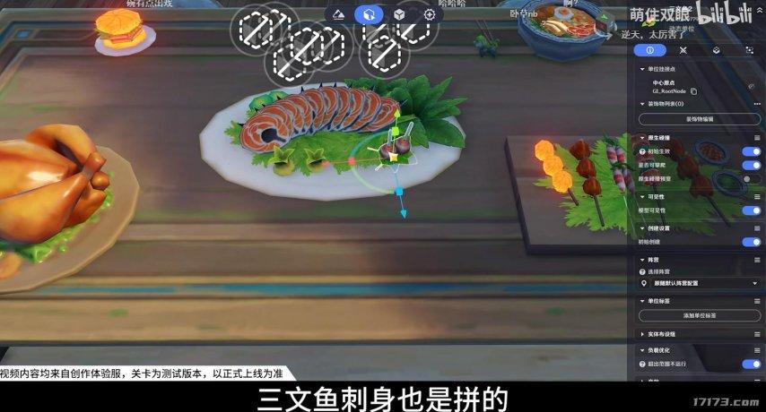 而如今,不僅有玩家用UGC做了有過場動畫的玩法,用零散組件拼出官方未實裝的“隱藏菜譜”,還手搓出了飛劍、坦克大炮等原神世界觀裏沒有的東西……!