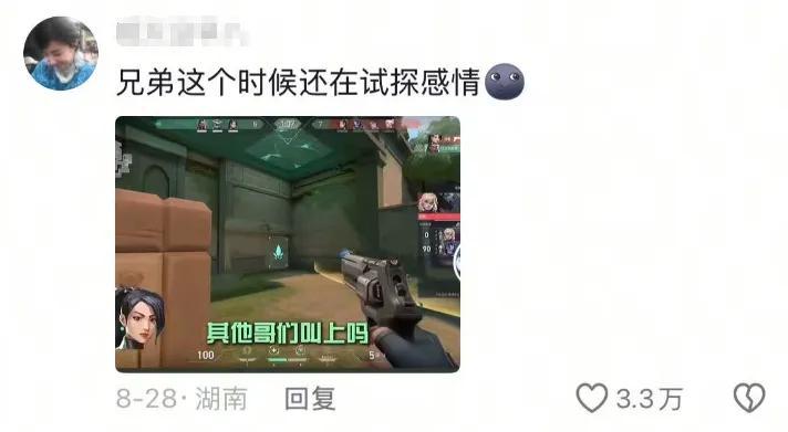 比如在一個視頻裏,一位大學生聽到背後的舍友因爲隊友失誤瘋狂吐槽(此時還未開麥),於是她走到舍友電腦前,按下了V鍵(開啓全隊語音),剛剛還在暴躁吐槽的舍友瞬間切換成溫柔的聲音“可惜兄弟,這把我的。”守護人設在這一刻得到了極致的體現。