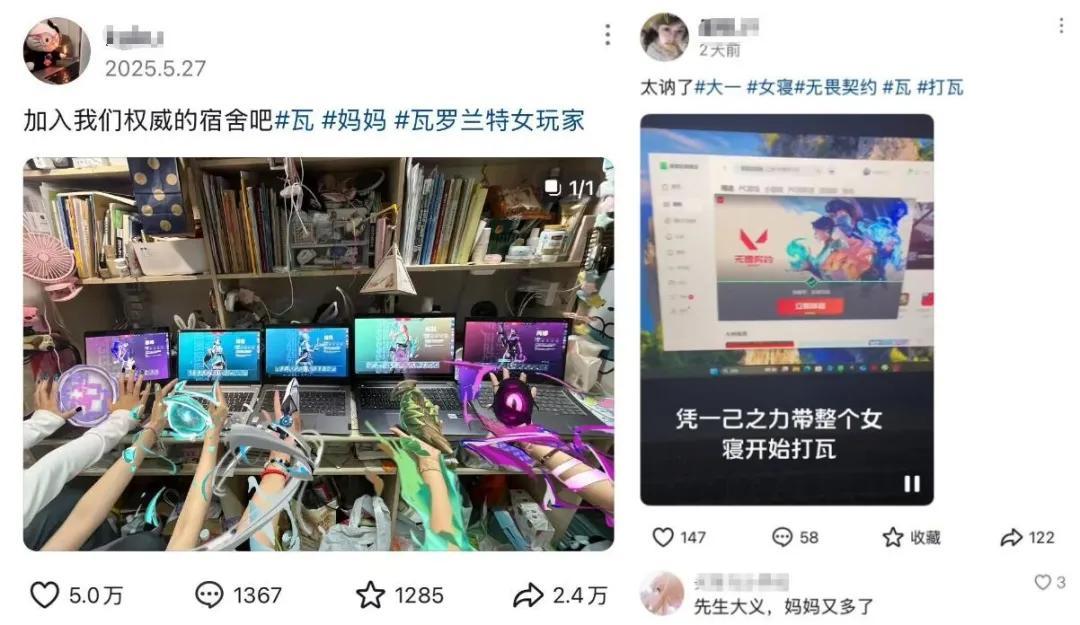 之所以提起此事,是因爲我在最近刷到了很多大學生的遊戲生活日常,而瓦是裏面佔比非常高的一部分,但凡高校生活相關場景,不管男大女大,似乎都熱衷於分享瓦的一切內容。另外從觀察來看,在目前瓦的內容生態裏,有相當一部分體量的內容源於大學生羣體。