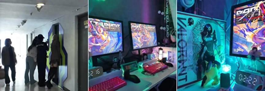 新聞的內容其實很簡單,宿舍的舍友是一羣打瓦愛好者,其中一位突發奇想,提出了改造電競房的想法,大家一拍即合,還找了電競瓦友社支持,經過了一週多的時間,“賽博電競女寢”建成,成爲了整棟宿舍樓靚麗的風景線,引來了不少同學圍觀。