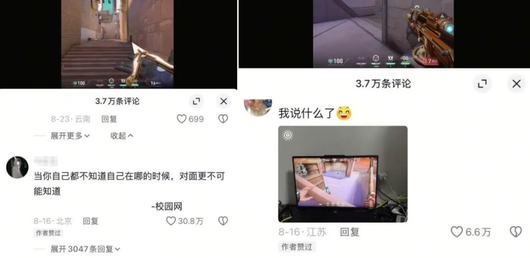 抖音上有個“在校園網神祕力量加持下,實現一對四全擊殺”的瓦視頻,點贊量超140萬。校園網網速過差是所有大學生在學校打遊戲都經歷過的傷痛,並不侷限某一款遊戲,但帶圖留言的幾乎清一水都是在學校打瓦遇到的情況。