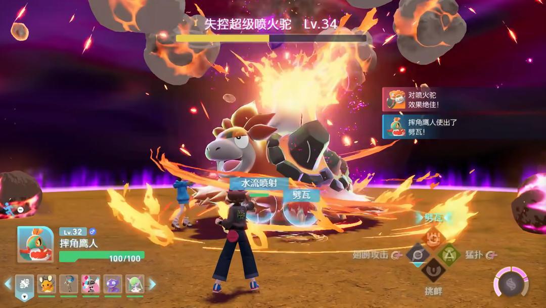 於是你只能一邊盯着它的攻擊,一邊瘋狂翻滾躲避,再抽空指揮寶可夢輸出。而在頻繁切換狀態的過程中,還得注意地上掉落的Mega能量,用來維持Mega進化狀態。