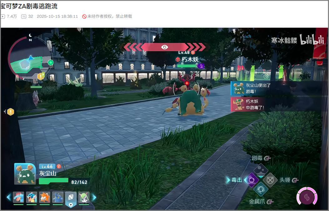 前面也提過,《ZA》裏的寶可夢多多少少都帶點攻擊性,技能可不一定只打寶可夢。角色身上其實也有一個隱形血條,被打太多次就會被直接送去寶可夢中心。