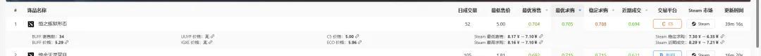 朋友截了張圖給我解釋,圖中《DOTA2》恆之煉獄形態在網易BUFF上的售價爲5.29元,在Steam的求購價爲8.16元,稅後入手收入爲7.1元。如果能實時交易+轉手,前後可賺不到2元的差價。