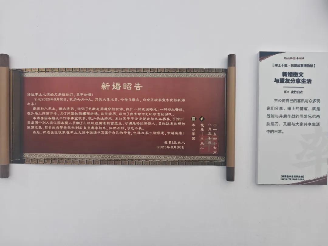一部9年前手機制作的電子史記,一封昭告天下的新婚檄文,一件籤滿名字的紀念衫......我也去過一些遊戲博物館,但卻很少看到像《率土之濱》(下文簡稱率土)這樣,把玩家回憶做成展覽主體的玩家博物館。