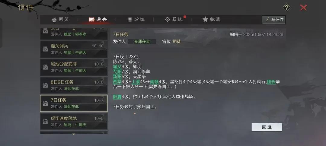 他會事無鉅細的告訴大家每天該做什麼、打什麼城、怎麼打城、去哪裏打架,把時間、地點、人物在公告裏寫得一清二楚。管理團隊只需要按照他的指揮,把命令層層下發,執行到位即可。