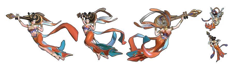 美術團隊回憶,起初他們設計“遇見飛天 楊玉環”時,還抱有許多設計慣性。大家基於玩家喜好,用了很多藍色和紫色,但敦煌研究者告訴團隊,這些顏色在古代都是沒有的。沒辦法,團隊只能從基礎的顏料配色開始學習,瞭解壁畫色彩爲什麼會氧化,氧化後呈現出的特徵是什麼樣的。