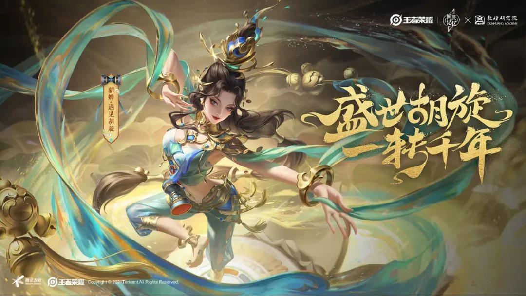 當然,《王者榮耀》融入中國傳統文化的關鍵轉折點,還是2018年上線的,與敦煌研究院合作的“遇見飛天 楊玉環”。