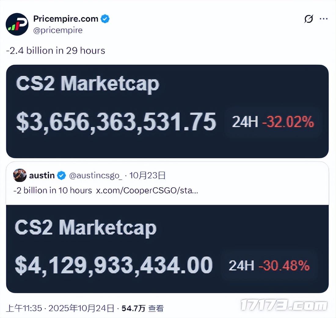 當然,崩潰還在持續,持續跌價加上恐慌形成的踩踏效應,導致皮膚價格仍在持續跳水,不少刀皮、手套跌價幅度達到80%,而且由於很多人只囤了這些手套和刀皮,實際虧的幅度要遠超大盤跌幅。