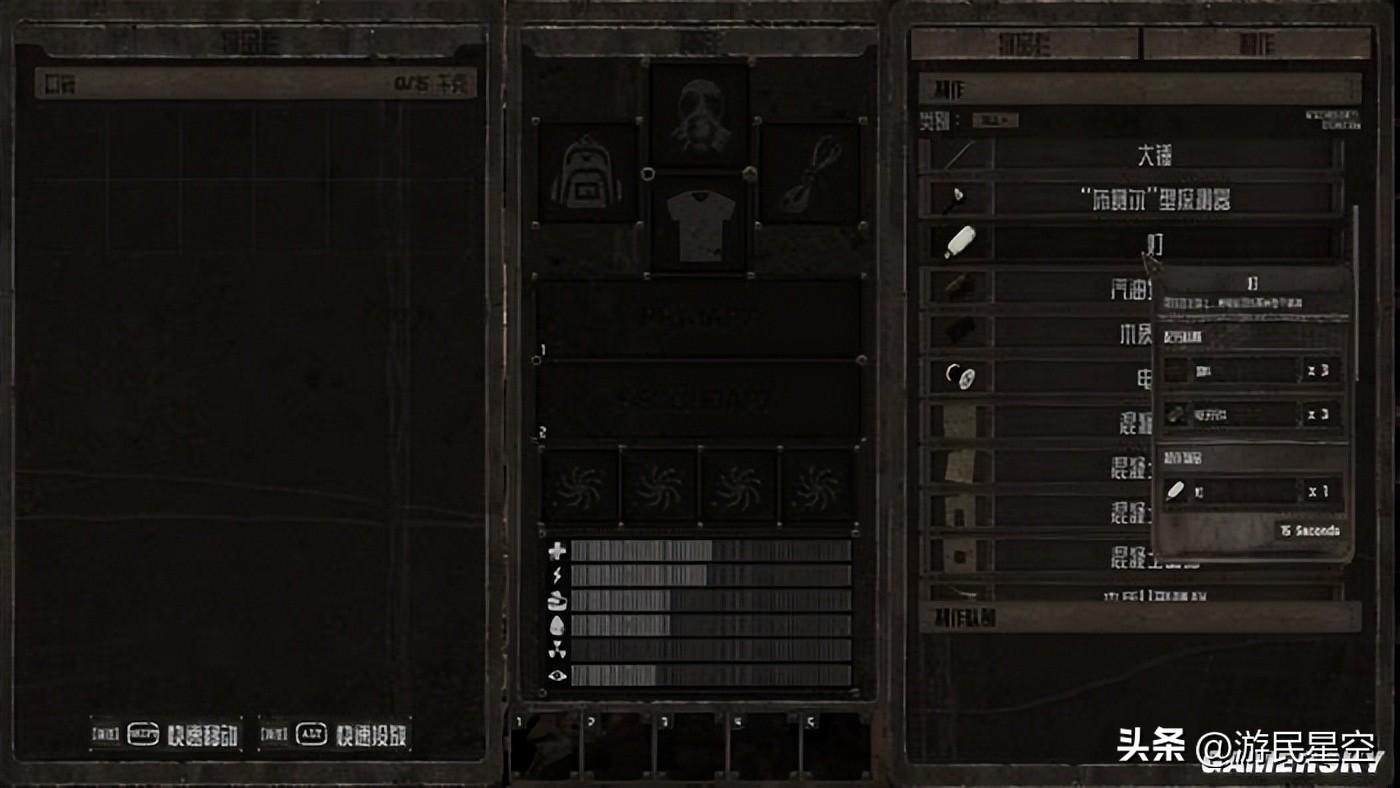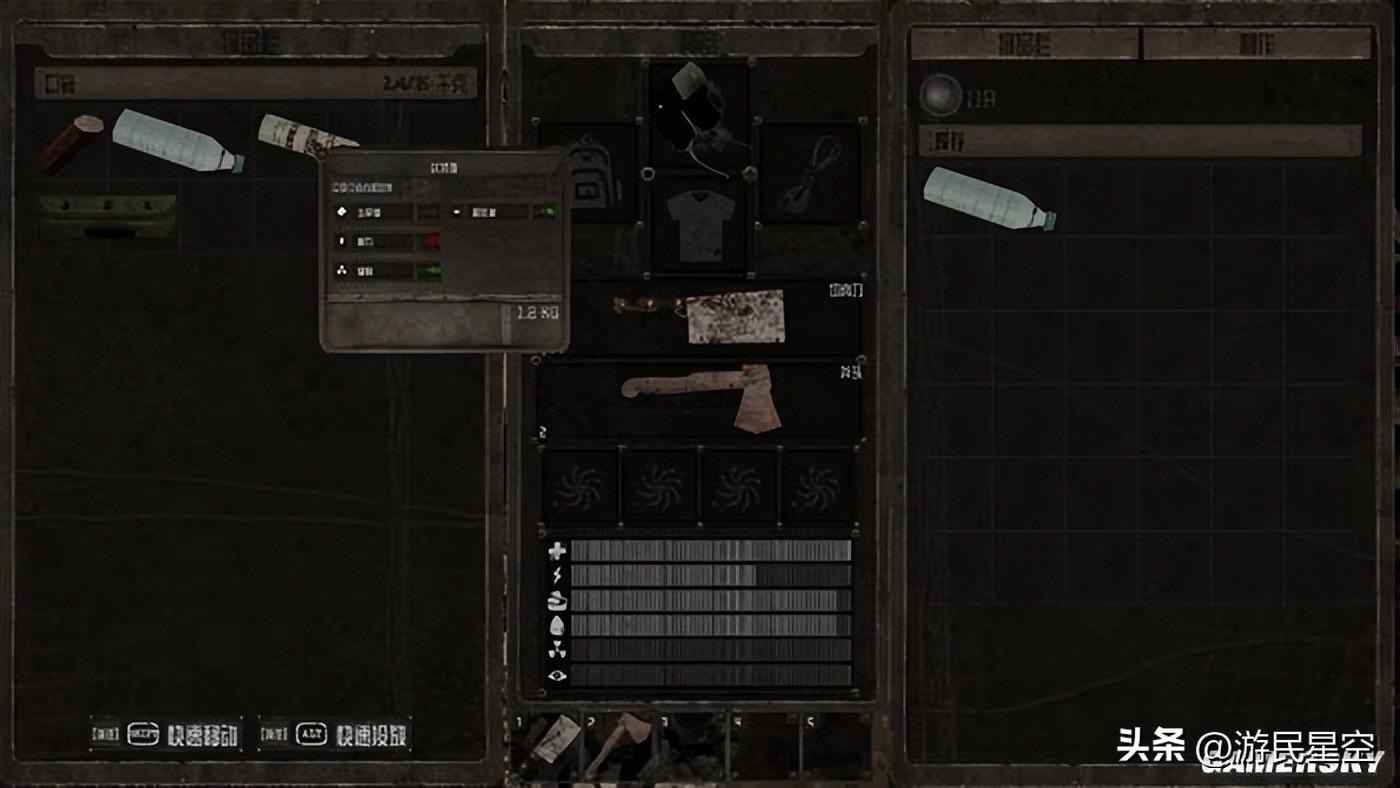 每次遊戲開局,玩家們有60S時間選購物資。伴隨着越來越急促的防空警報,大腦將陷入一片混沌。是多拿點罐頭和飲用水,前期衣食無憂,還是帶上斧子、大錘等開荒工具,亦或者香菸和伏特加拉滿,主打一個醉生夢死,需要玩家們按自己的需求來選。當然,如果是組隊遊戲的話,可以分工合作,但更多的人,意味着更多的食物消耗,有利有弊。